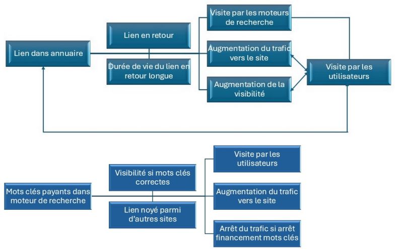 Les annuaires listent habituellement les sites en fonction de leur niche, lieu ou catégorie, et incluent fréquemment des commentaires. Lorsque quelqu'un consulte un annuaire numérique, son principal objectif est de dénicher une entreprise ou un site qui satisfasse ses exigences, c'est-à-dire ce qu'il cherche à cet instant précis. Un annuaire facilite grandement la tâche aux utilisateurs pour naviguer à travers les publicités (marketing). L'inscription d'une entreprise ou d'un site dans un annuaire améliore inévitablement la visibilité de ce dernier, augmentant ainsi les possibilités de référencement et potentiellement de ventes pour une boutique en ligne. - Des liens de confiance
